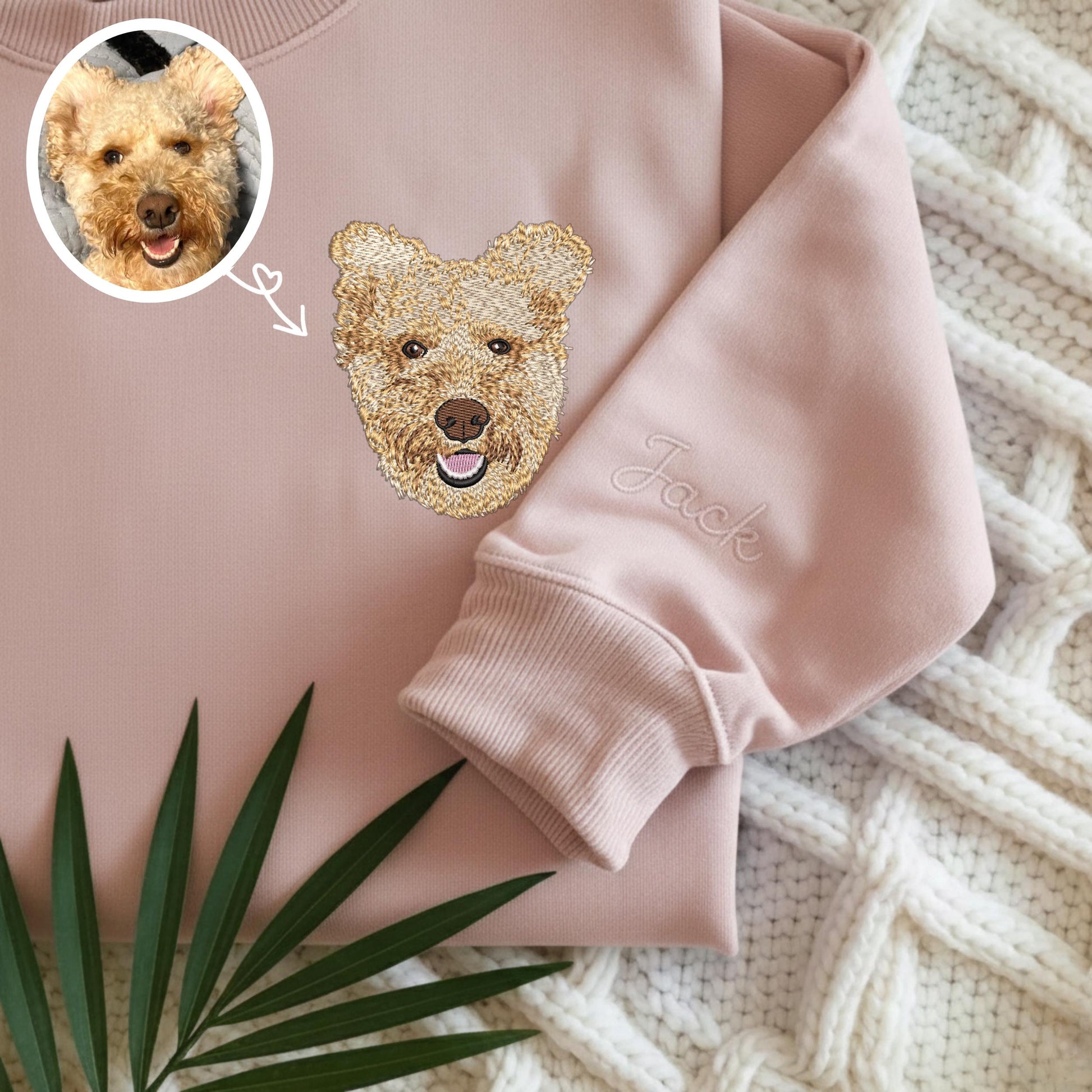 Custom Pet Portrait Embroidered Sweatshirt, Dog Memorial Gift