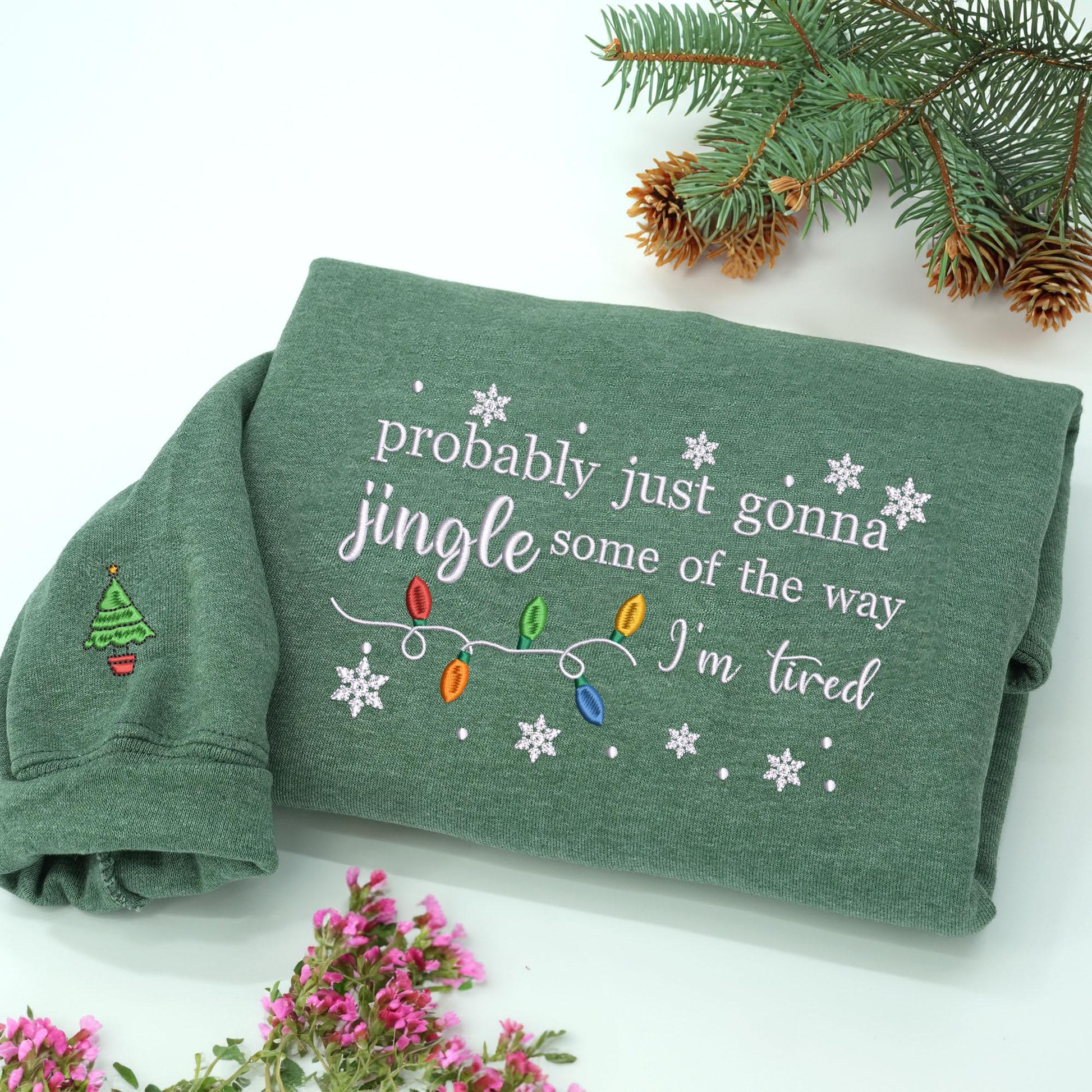 Embroidered Christmas Jingle Song Sweatshirt: Probably Just Gonna Jingle Some Of The Way I'm Tired, Xmas Gift