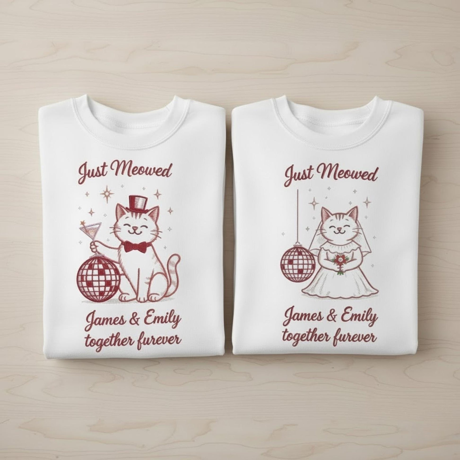 Embroidered Just Married Comfort Colors Shirt Honeymoon Shirts Newlywed Cat Couple Matching Mr and Mrs Personalized Wedding Date Gift