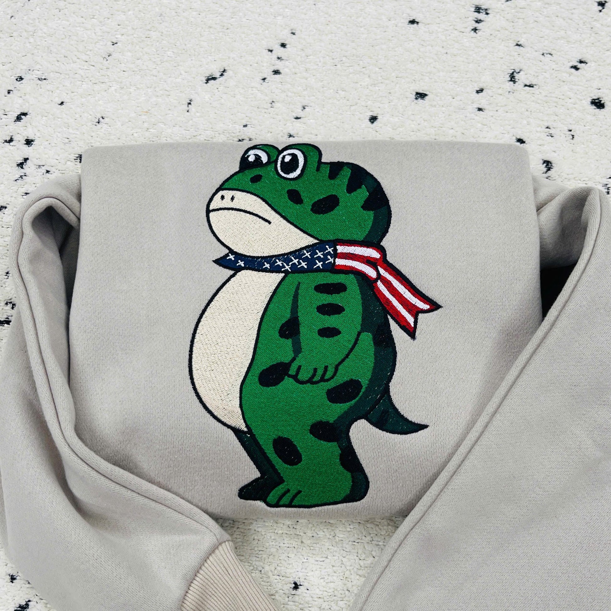 Embroidered Resist Portland Frog Sweatshirt, Cute Frog Lover Gift, Cozy Animal Crewneck, Unique Portland Hoodie, Funny Embroidered Top