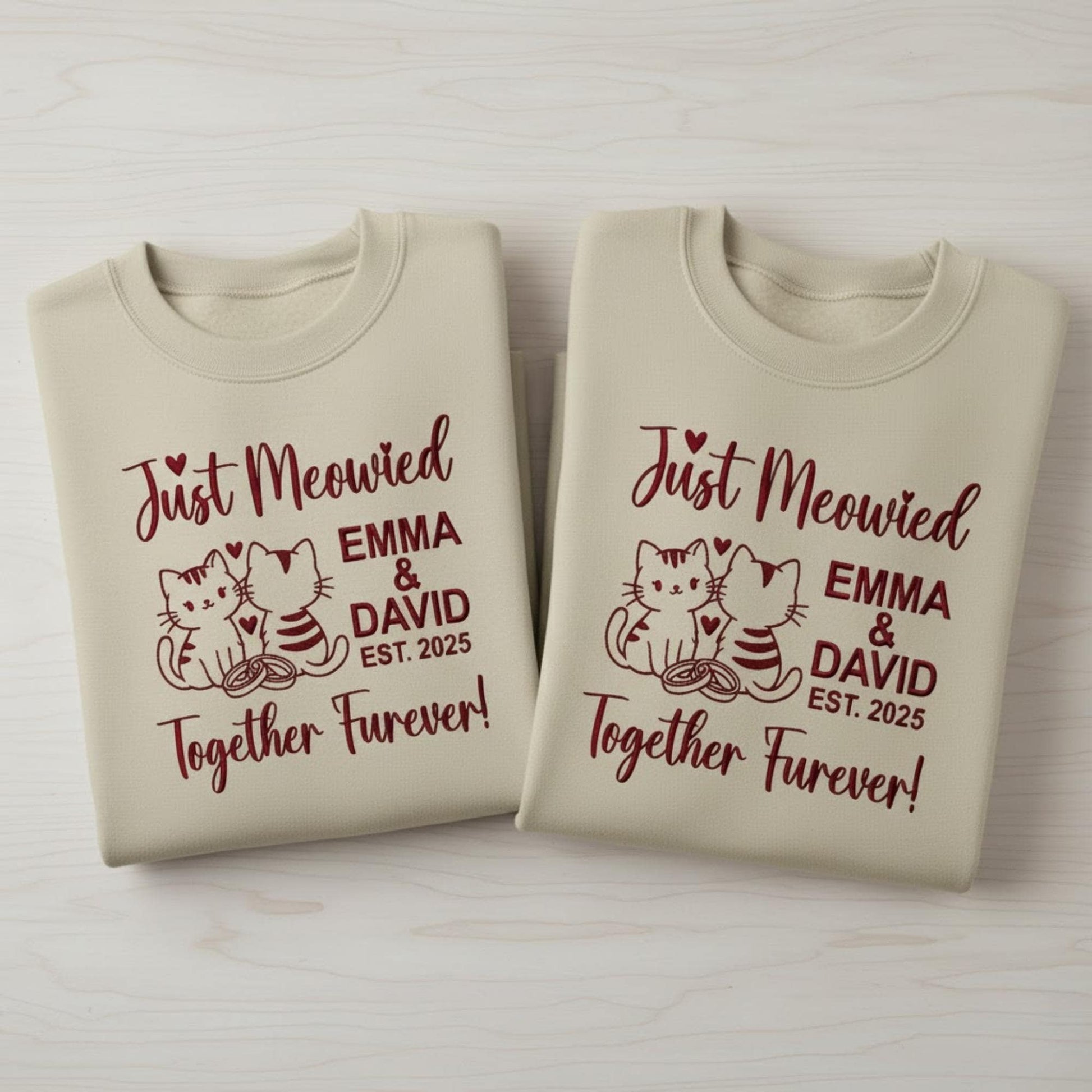 Just Married Cat Lover Embroidered Sweatshirt Custom Wedding Cats Shirt Honeymoon Matching Bride Groom Gift Personalized