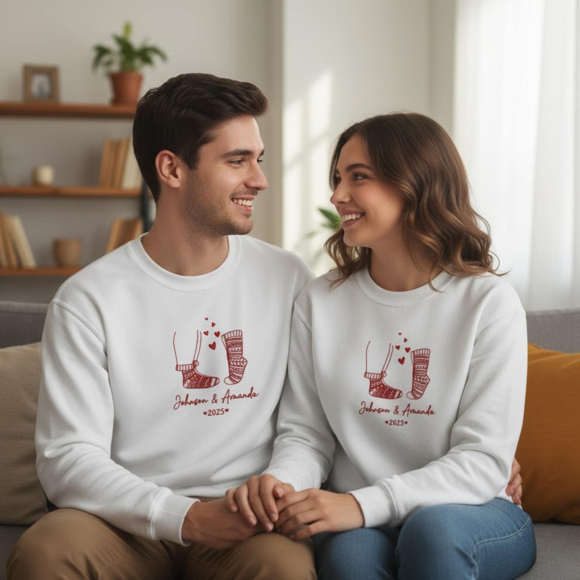 Matching Embroidered His and Hers Christmas Sweatshirt Personalized Couple Names First Christmas Married Holiday Sweatshirt Gift