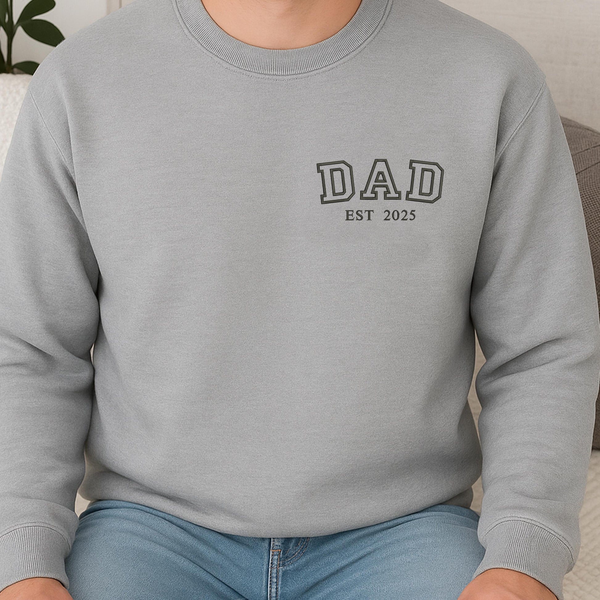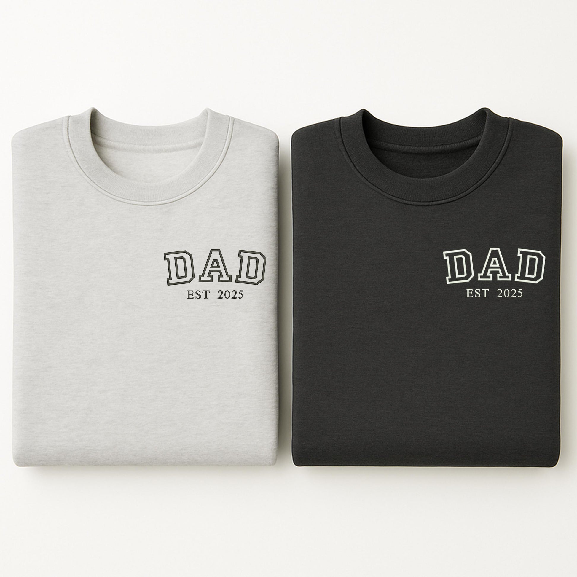 Personalised Embroidered DAD Est Hoodie, Custom DAD Est T Shirt, Custom Gift for New Parents, Matching Couple Gift, MUM Est Year Embroidery