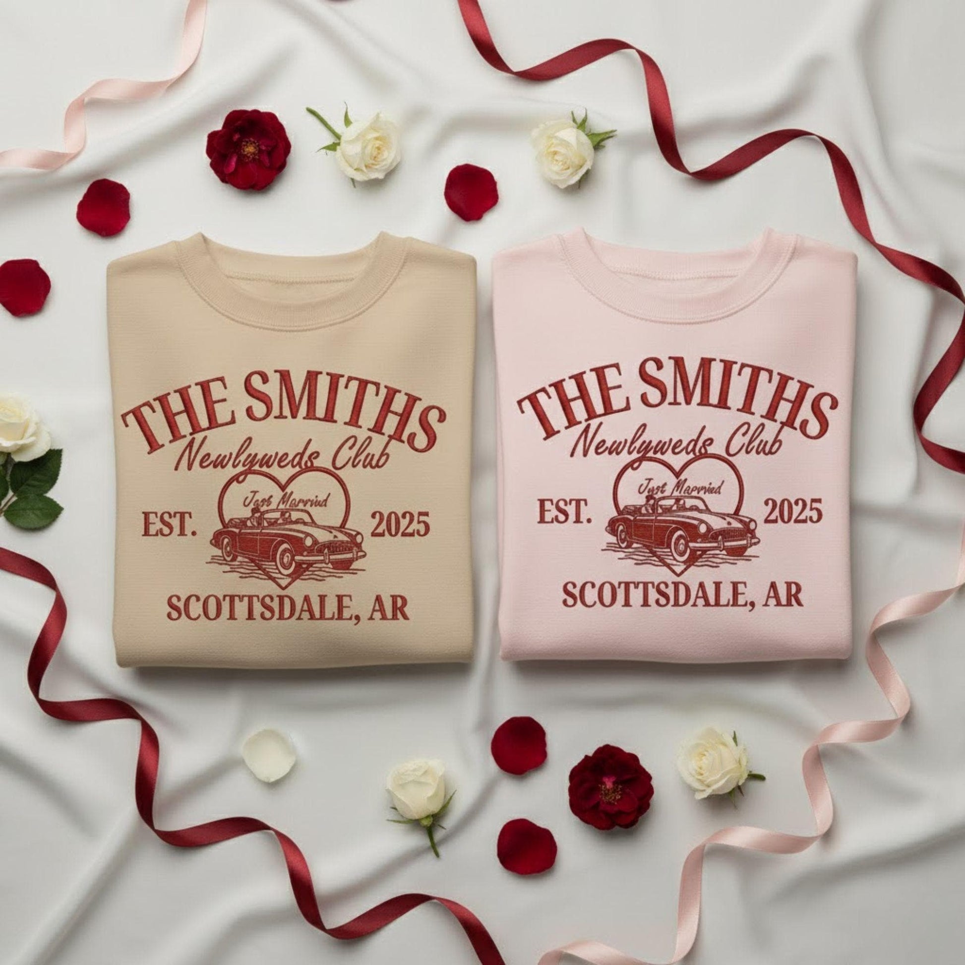 Personalized Embroidered Mr and Mrs Comfort Colors Sweatshirt Matching Honeymoon Couple Tee Custom Wedding Date Gift for Newlyweds